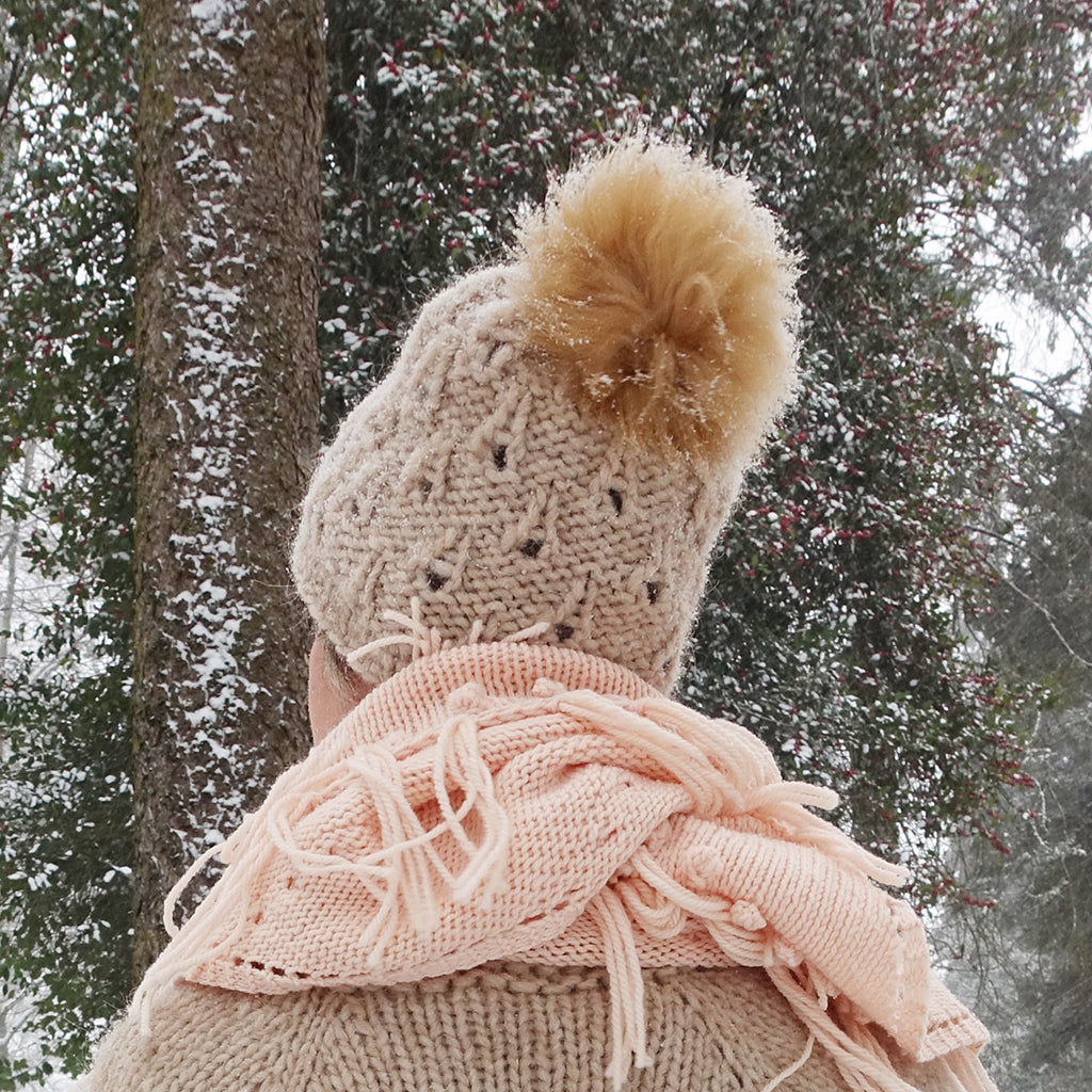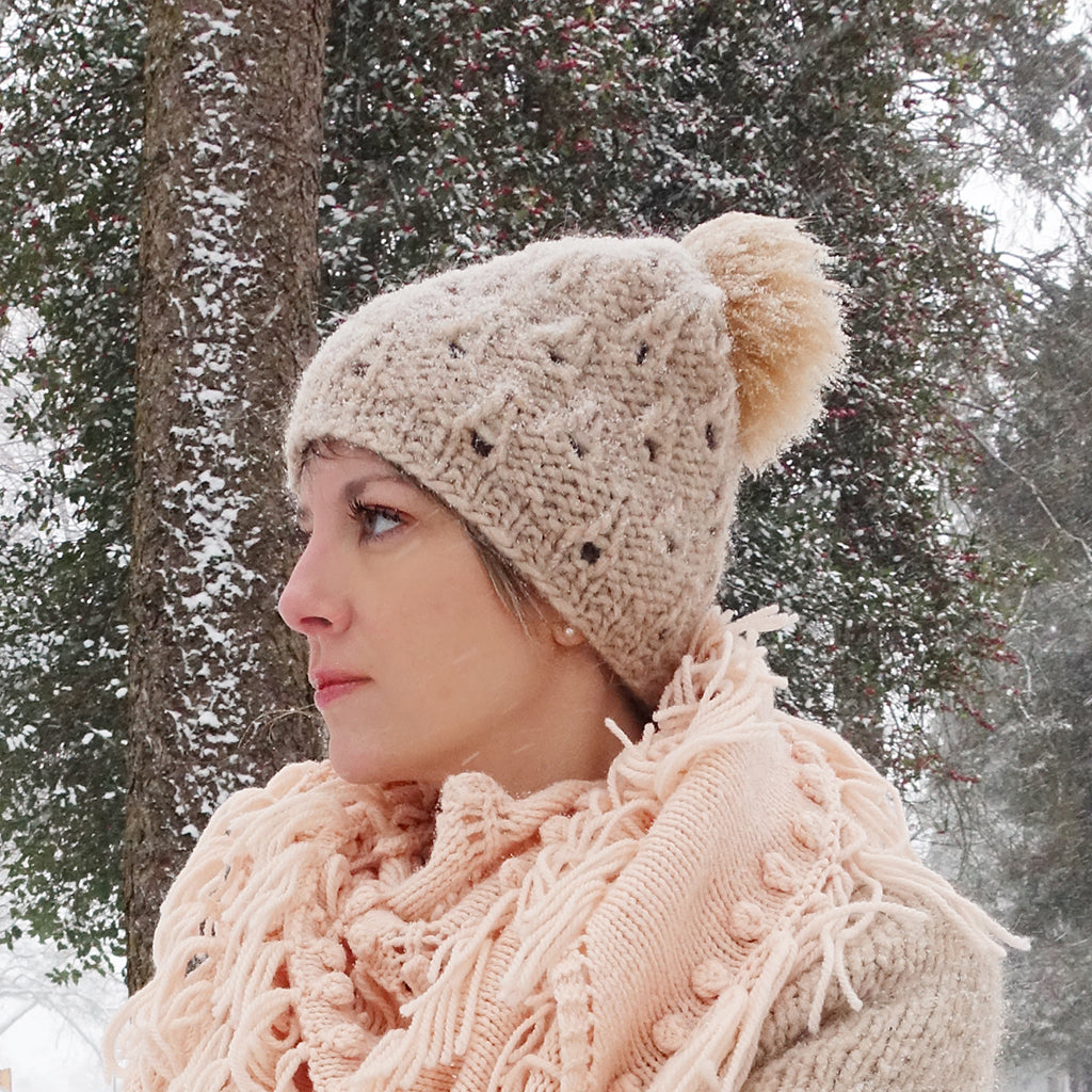 This semi-slouchy hat in super-bulky weight yarn adorned with the fluffiest pompom you can find will be your go-hat for the season. With a simple Raindrop motif repeat, In the Snow Slouchy is a beautiful knit and a joy to make.