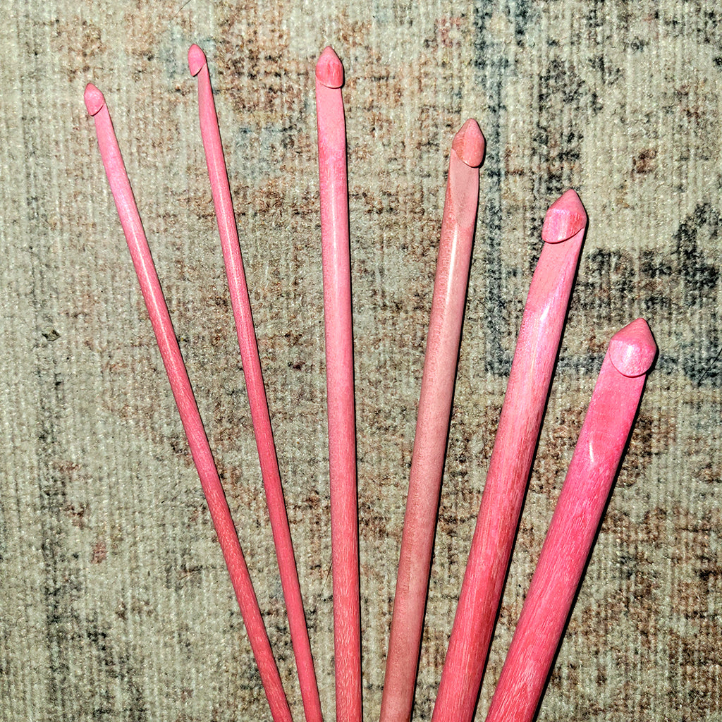 As a big Lyyke fan, a pink lover, and now, an obsessive crocheter, it made sense to bring in the full range of Blush Crochet Hooks! Made of birch, these hooks feel warm to the touch and have a wonderful smooth finish.