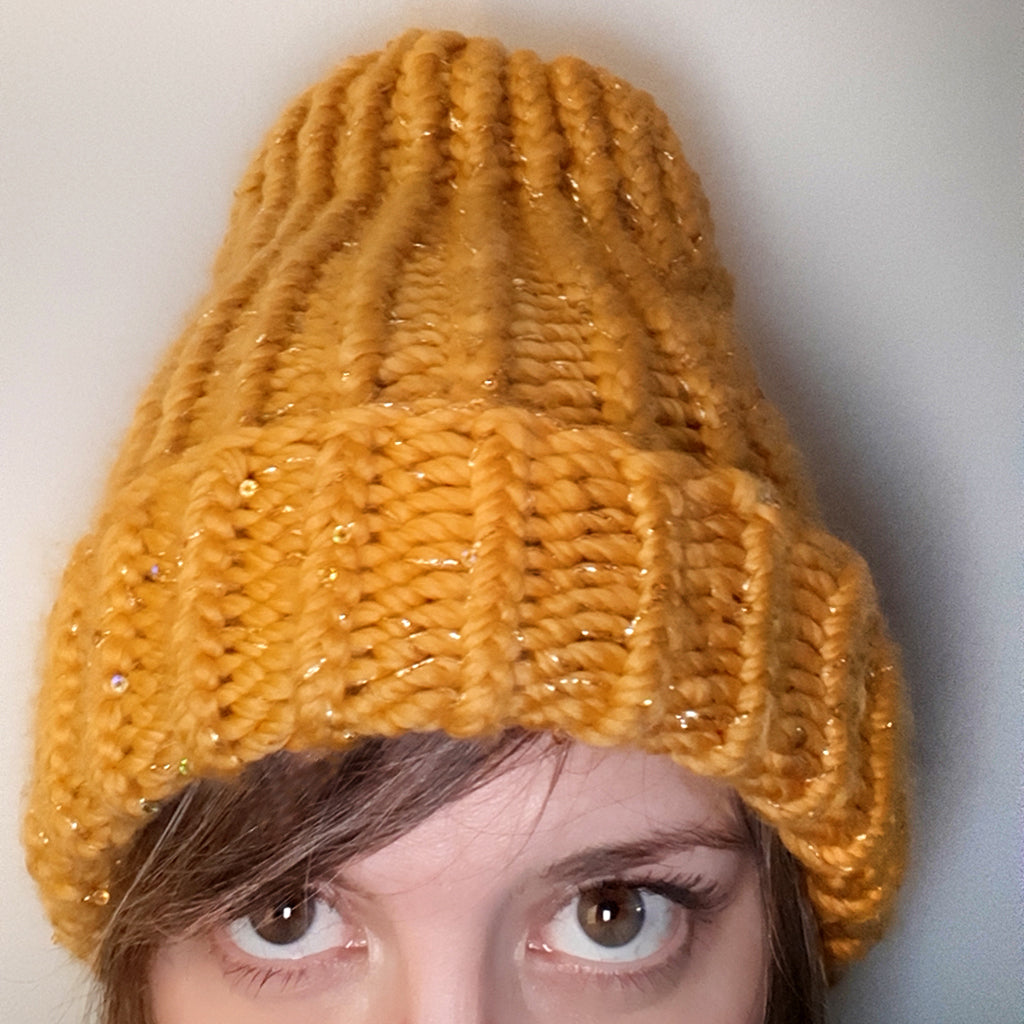 Have you ever seen a blingy bulky knit?! You’re going to want to make this, trust me! Introducing the Magpie Darling Bulky Beanie: a sparkly, textured, quick-knit that boasts bold results. And, it’s the perfect accessory to add joy to those grey days.