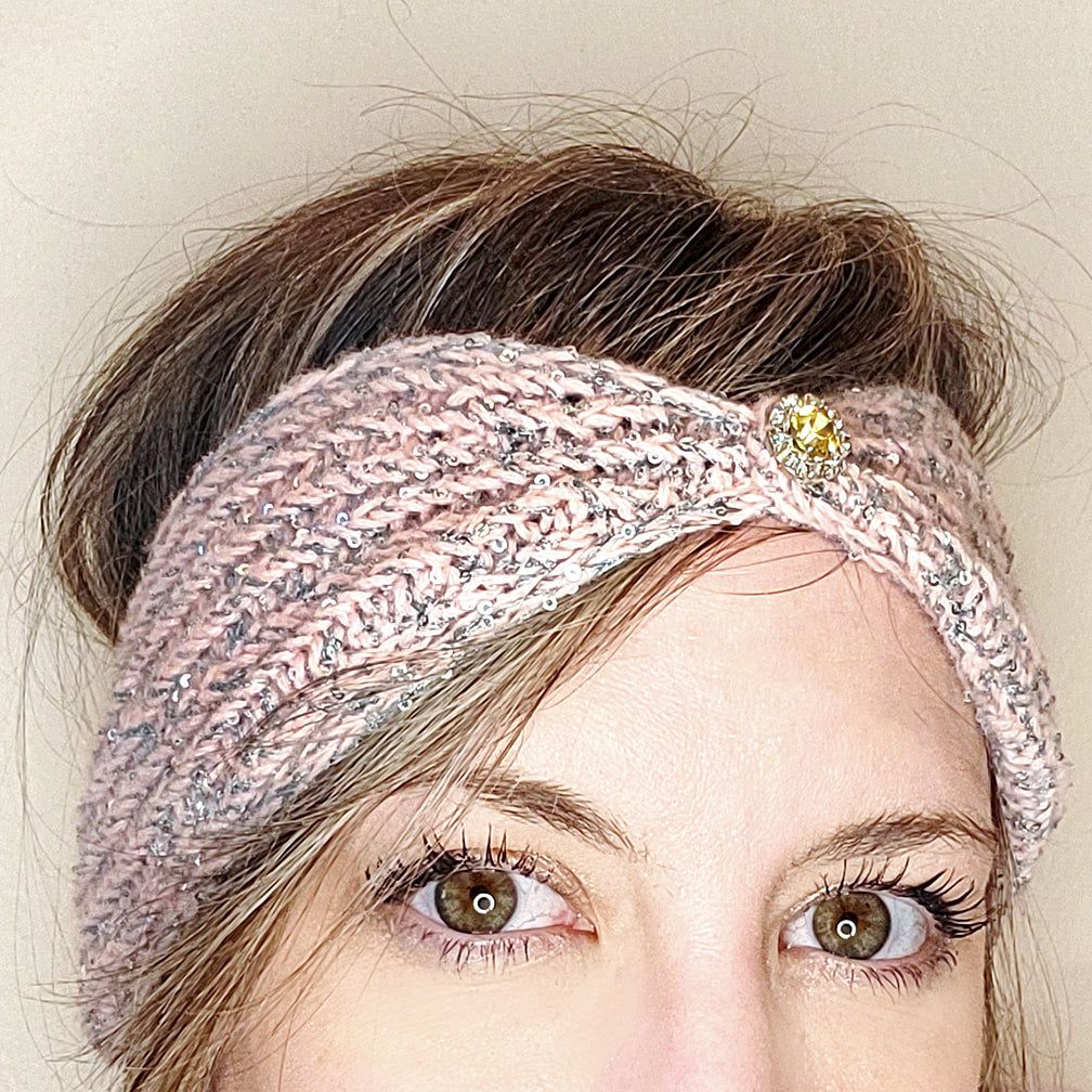 Wanting somebling special and sparkly? Somebling dainty and sweet? Look no further!  The Mega Bling Headband is everything you ever wanted, and more.  It’s a fun quick knit that’s luxurious and gives you a taste of the good life.  Looking super stylish, this headband is a great accessory for a night out, or the perfect piece to spice up any outfit. It’s a head-turner; careful, if you knit one for yourself, all your friends and family will want one, too!