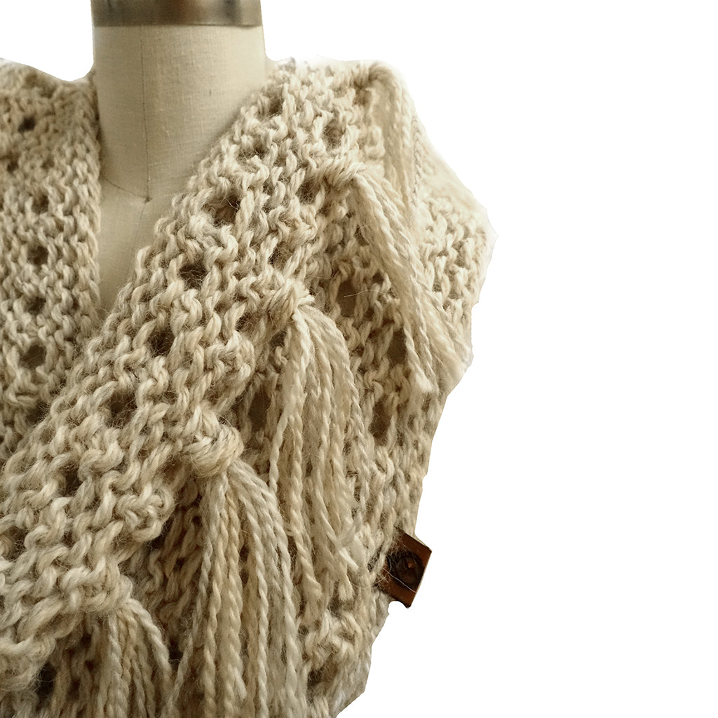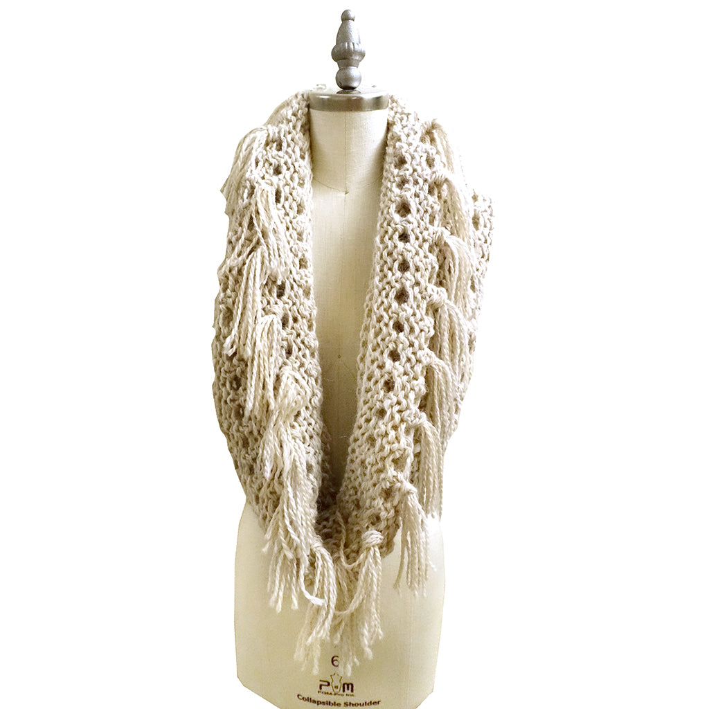 This Mega Chunky Cowl is worked in a beautiful bulky eyelet pattern. With fun tassels, this cowl has style. Wear it in the spring with a light sweater or t-shirt; dress it up over a leather or jean jacket in the fall; spice it up over a trench or warm coat in the winter. This versatile cowl is the perfect accessory for any occasion!