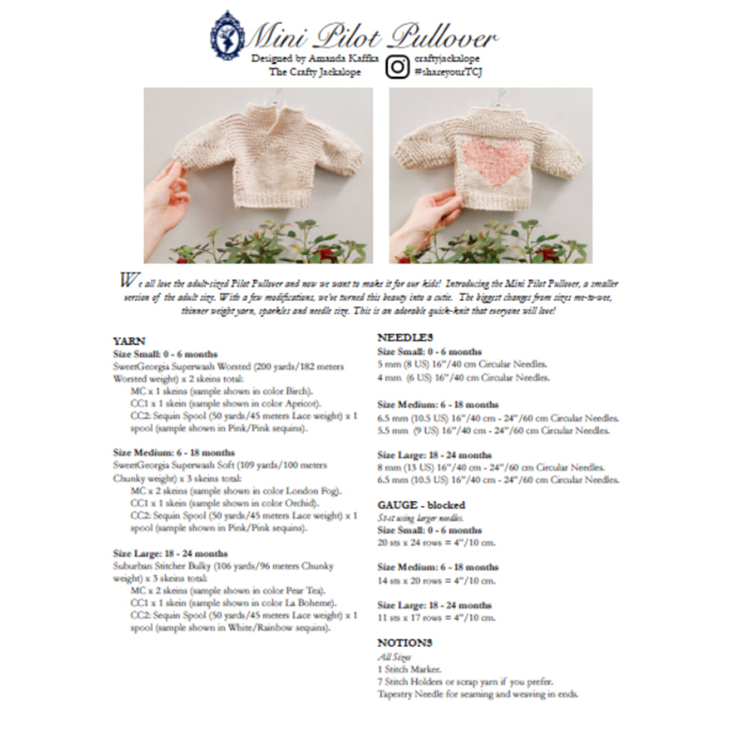 - MC x 2 skeins (sample shown in color Pear Tea).