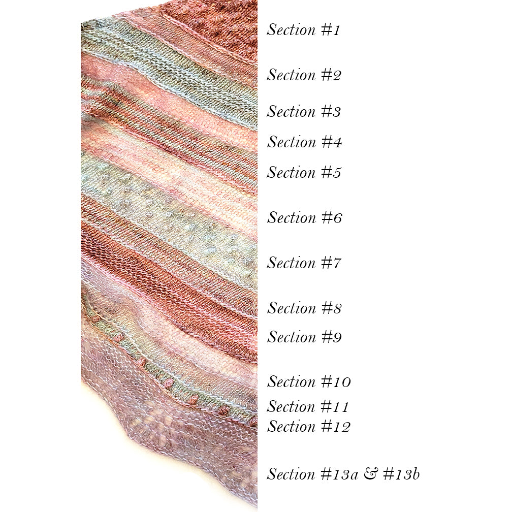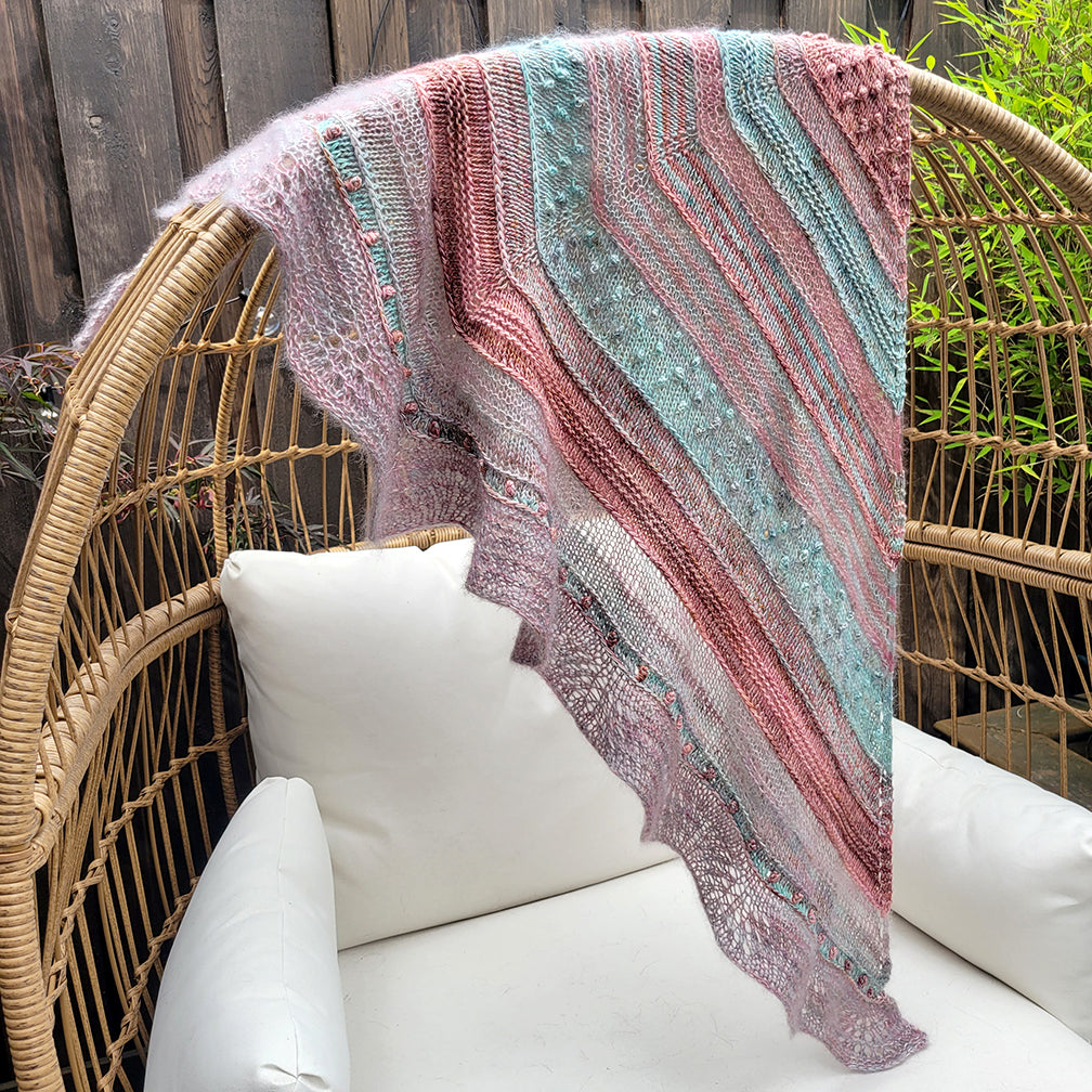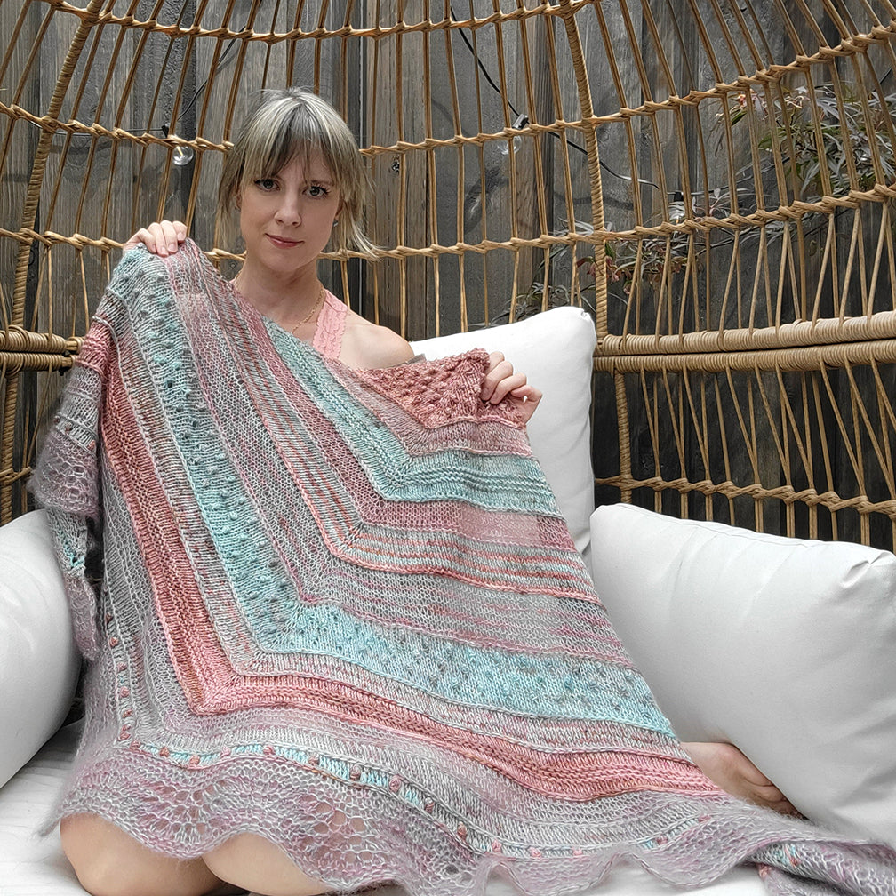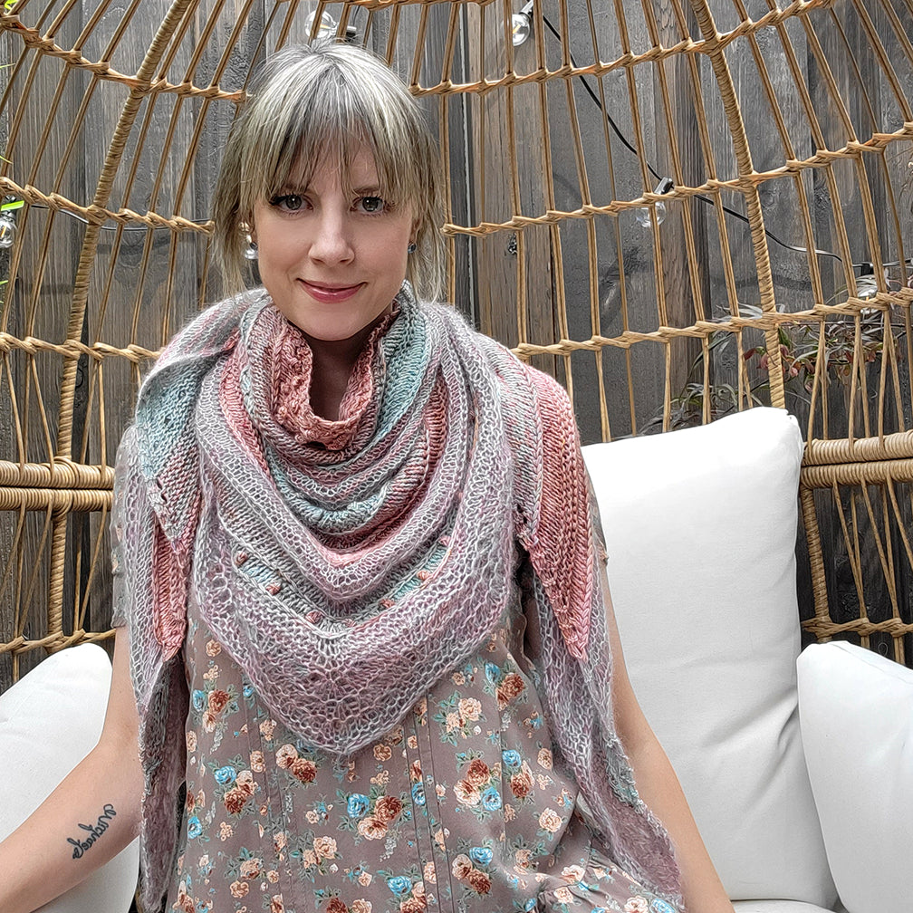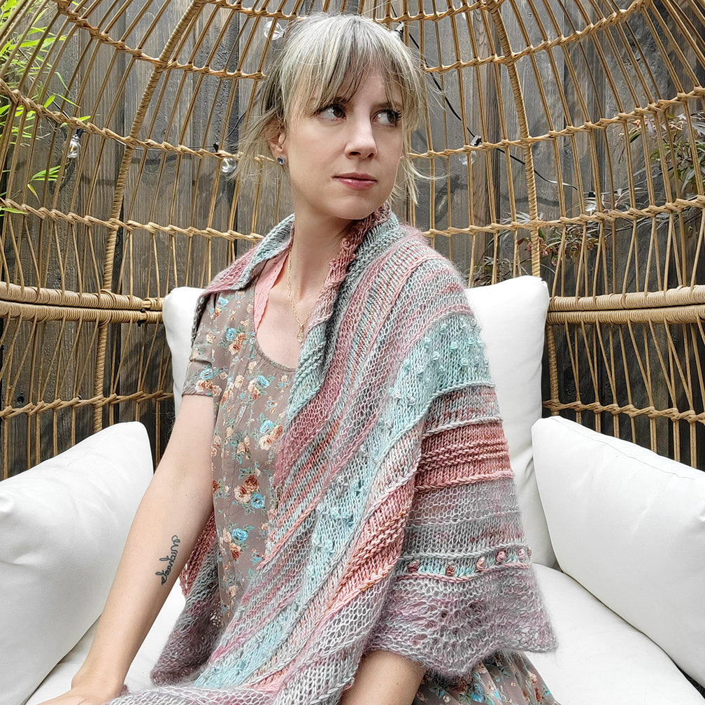 “Sestra” is the Ukrainian pronunciation for sister, and this shawl was designed in honor of two beloved sisters, Grocery Girls Tracie and Jodi, using the custom colorways they inspired. Knit with one skein each of La Bien Aimée Merino Singles and Mohair Silk in Sienna and Jasper, Sestra Shawl takes you on a journey of texture and color. A bind-off/cast-on technique creates lines of horizontal stitches that separate 13 vertical sections, each one highlighting the yarn’s beauty. It’s an addictive project you won’t want to put down. The result is a stunning shawl that you can wrap around yourself like a sisterly hug.
