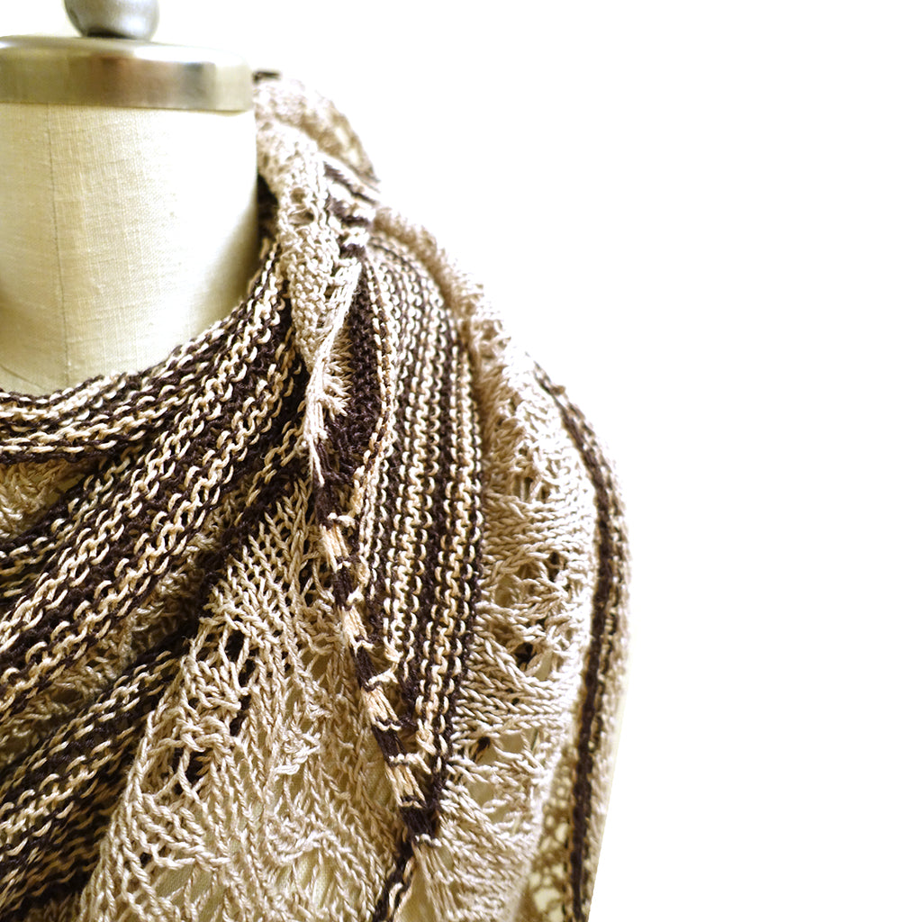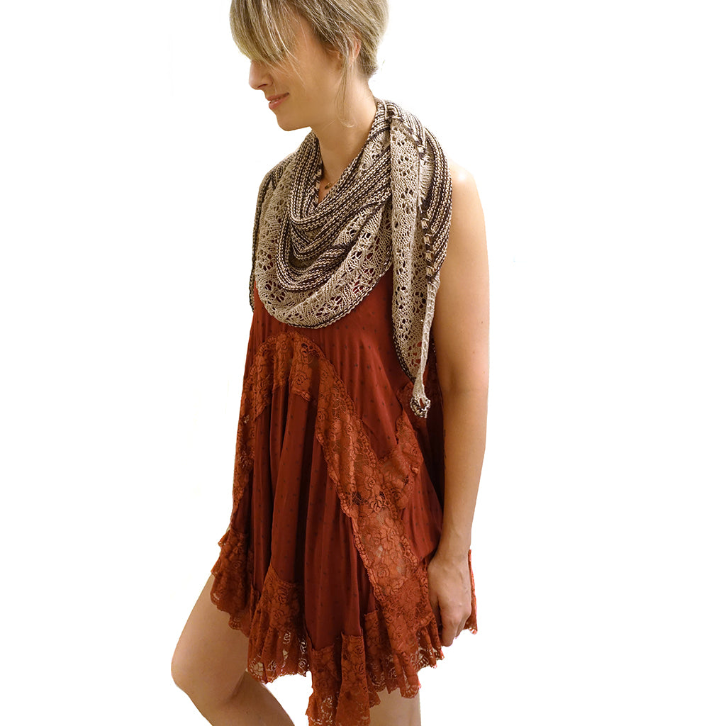 Summer Sparrow Shawl is a beautiful crescent shape that gracefully drapes over the shoulders and around the neck. Knit in the suggested Linen, this shawl is perfect for a light airy cover-up; it also looks great knitted in any fiber and works for all seasons.