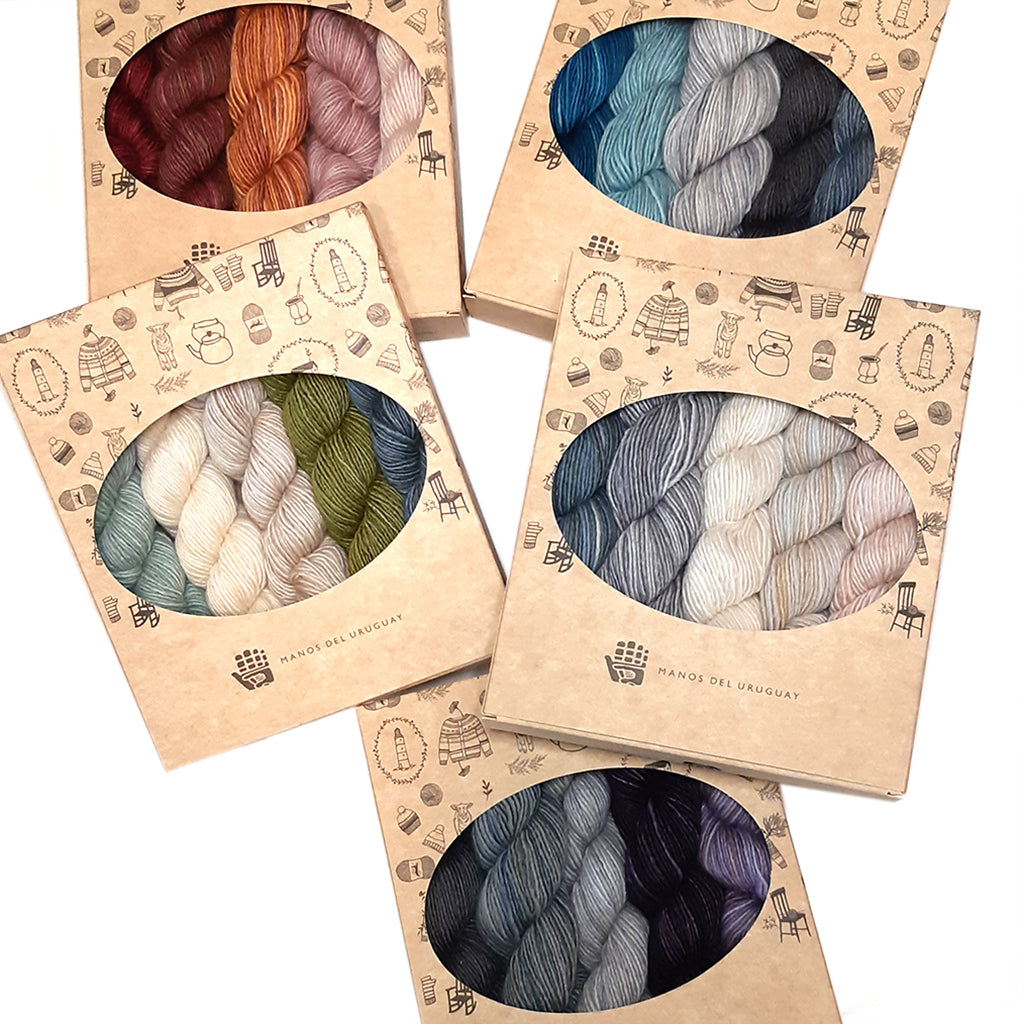 - 5 mini skeins about 98 yards/ 90 meters each, a total of 490 yards/450 meters in a Fingering weight.