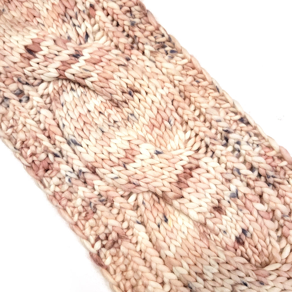skills needed: Simple cable, knit & purl. Bandana is knit flat and then seamed.