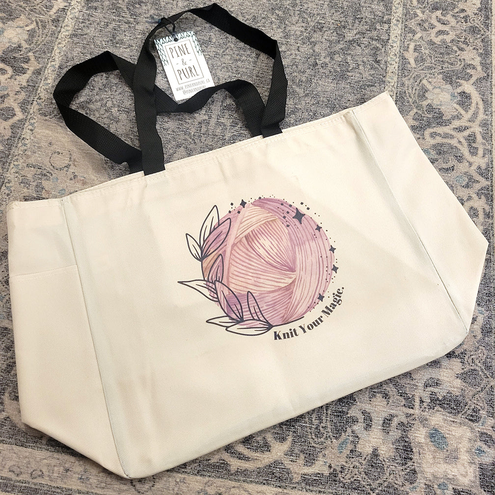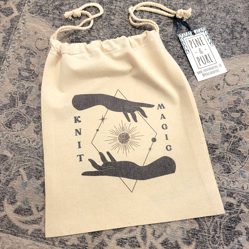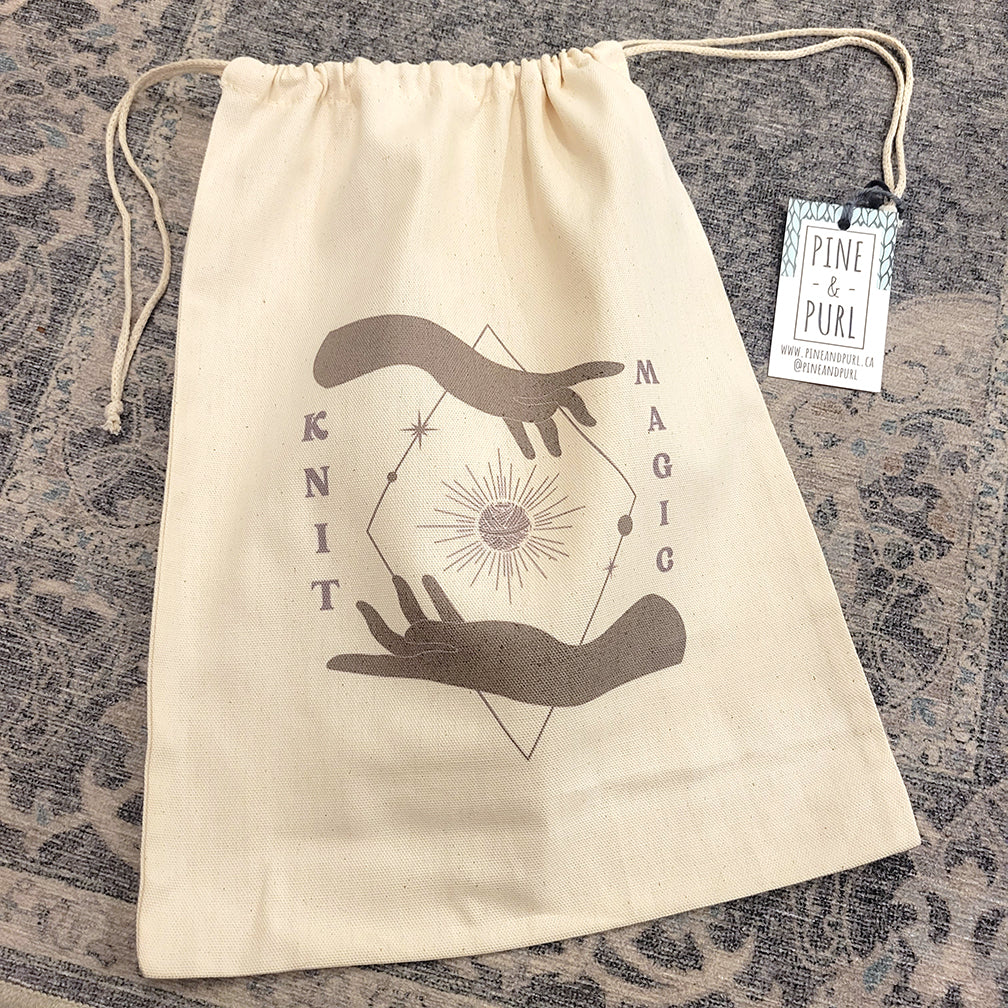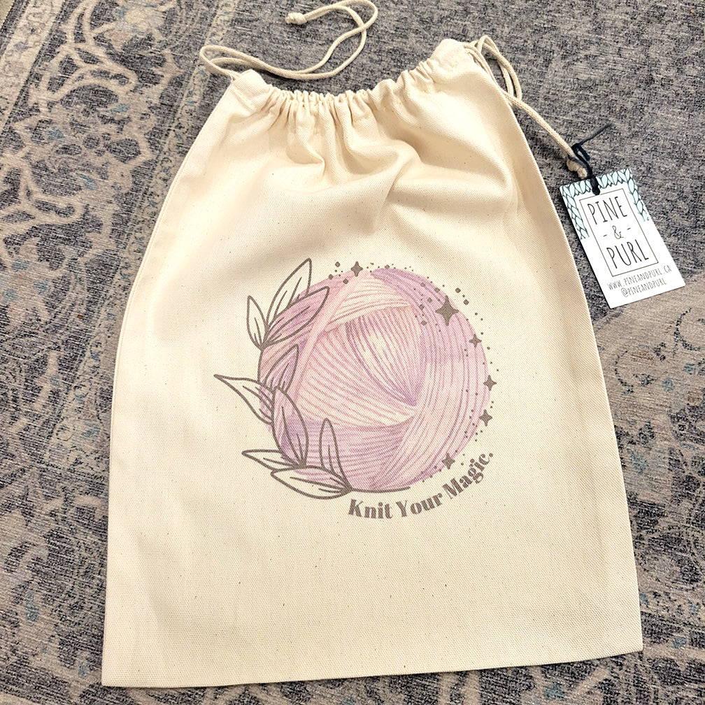 I love working with Canadian companies. Together, Andrea, the founder behind Pine & Purl, and I came up with custom sparkle and magic themed bags; we hope you love them as much as we do!