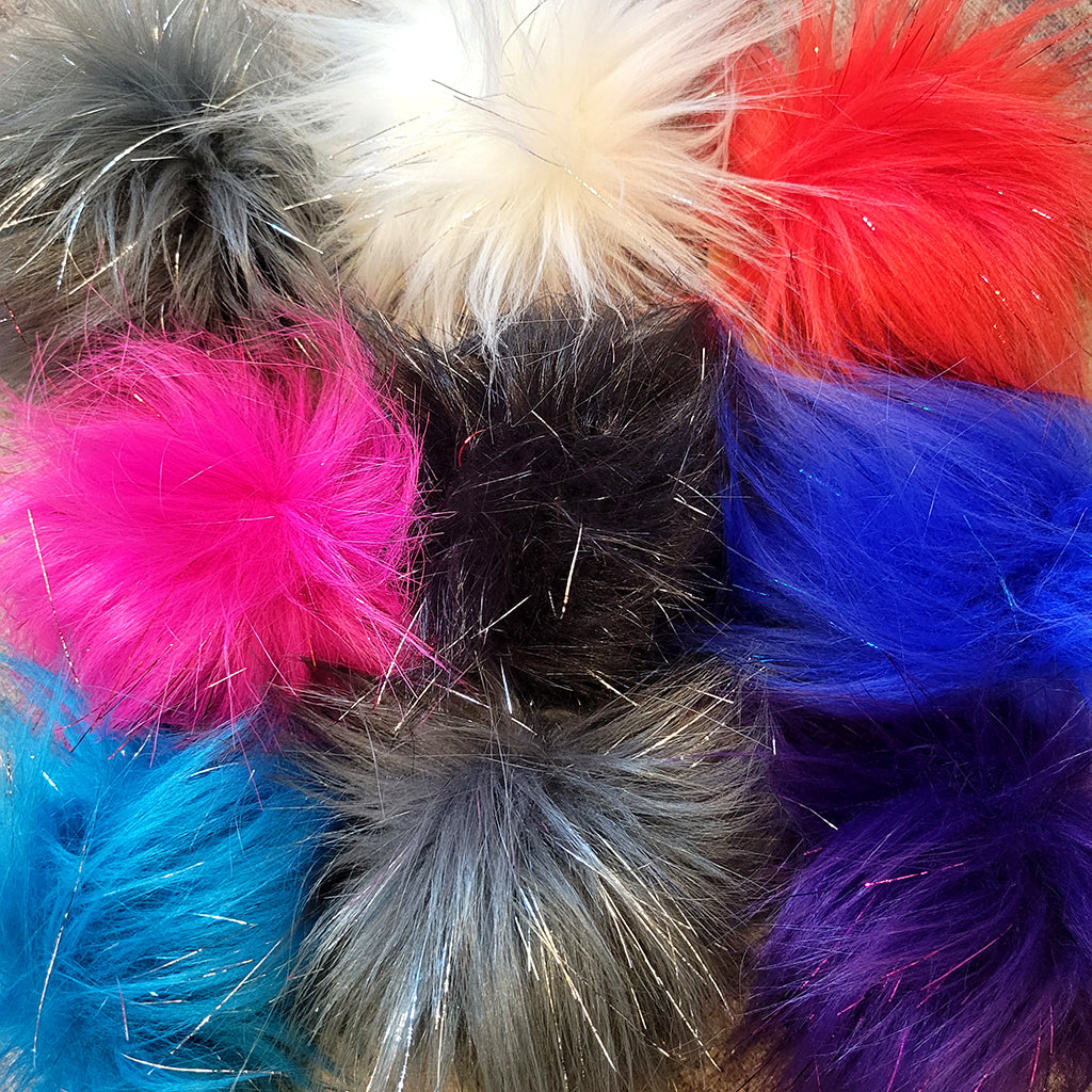High-quality tie-on FAUX FUR pompoms by Yarnboler. Handmade in Vancouver, BC Canada, can't get better than that, eh!
